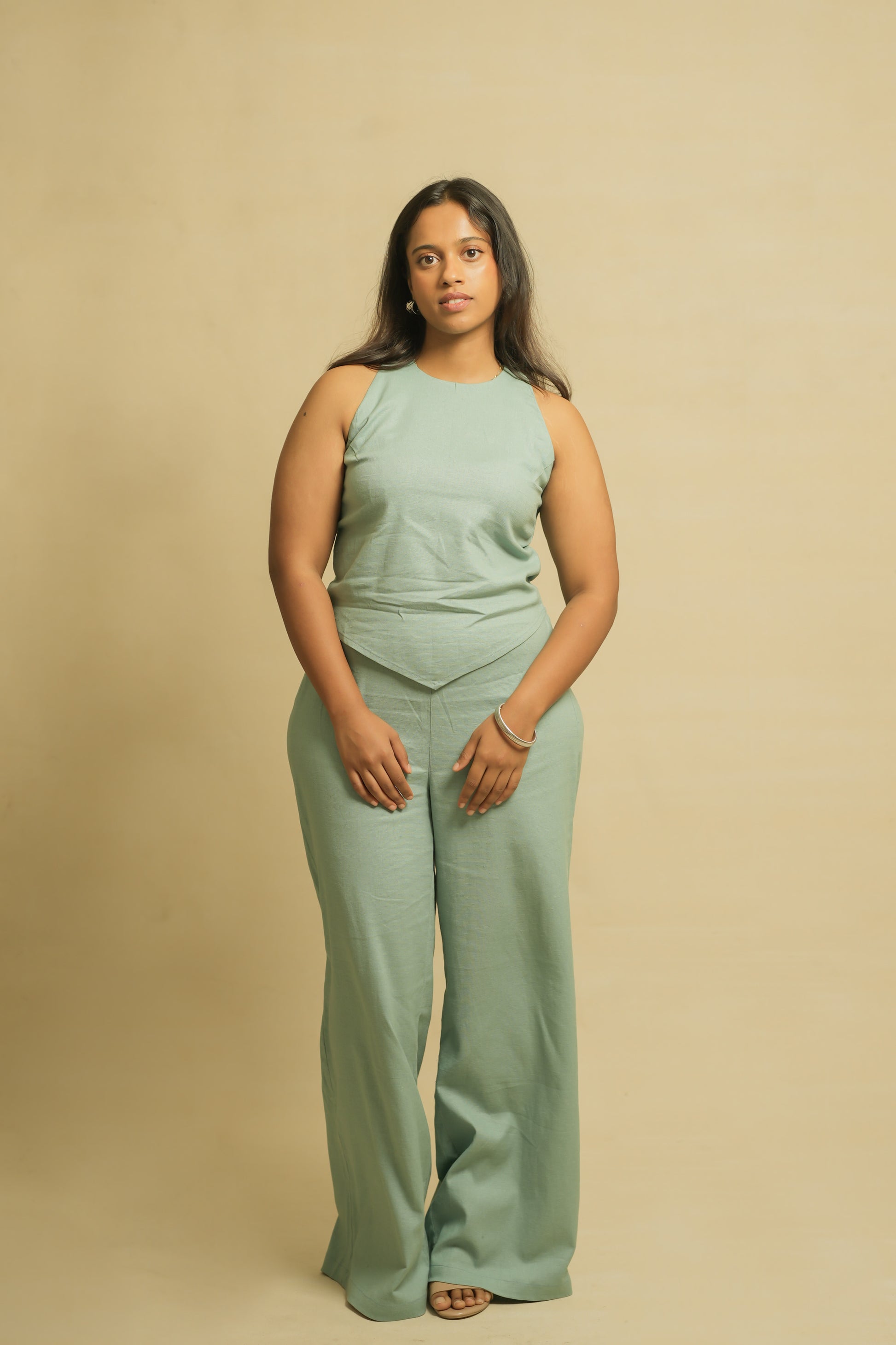 The Lina Linen Pants are designed for comfort, featuring a smooth waistband in the front and elastic at the back for a perfect fit.